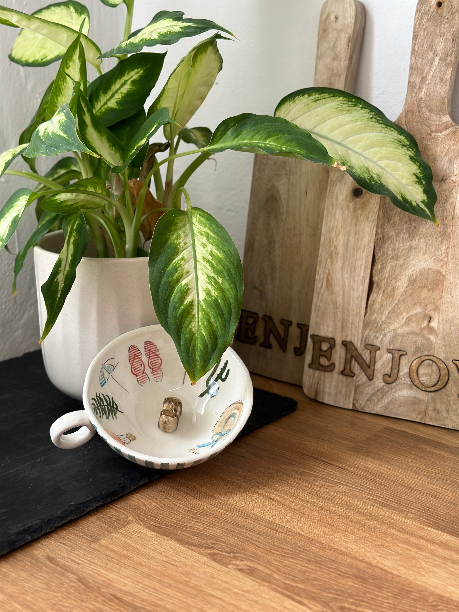 Da es sich um handgefertigte Tassen handelt, können die Produkte in Farbe und Form von den Produktbildern abweichen. Bitte achtet darauf die Tassen keinen starken Temperaturunterschieden auszusetzen, Keramik ist ein Naturmaterial und lebendig.